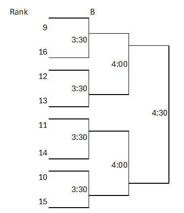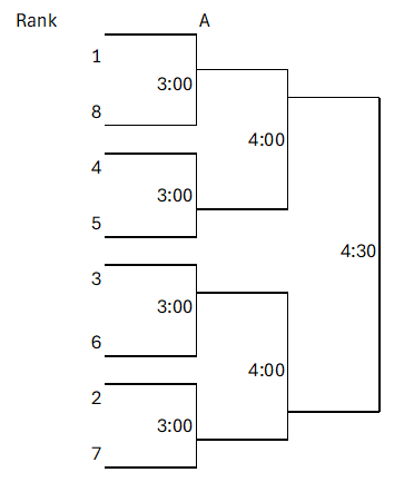In seeding round ties are not broken. In the playoffs, sudden-death rounds are played until the tie is broken